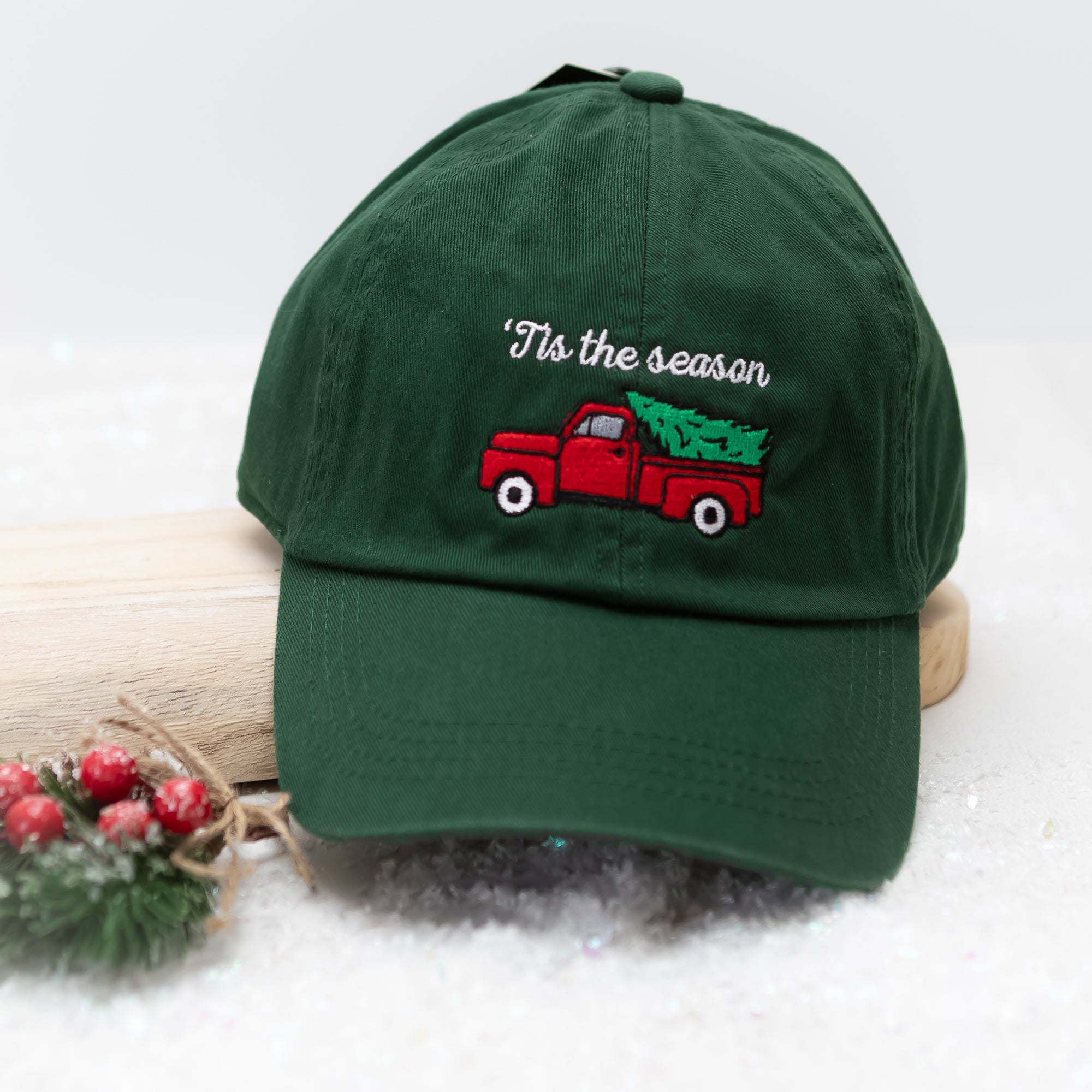 Bring nostalgic holiday style to your look with the Christmas Classic Truck Embroidered Baseball Cap in Black. Featuring a beautifully stitched red vintage truck carrying a Christmas tree, this festive cap captures the heart of classic Christmas tradition. With its comfortable, adjustable fit and soft cotton feel, it’s perfect for decorating days, gift shopping, or casual holiday wear. A charming everyday accessory for spreading Christmas cheer in timeless style!