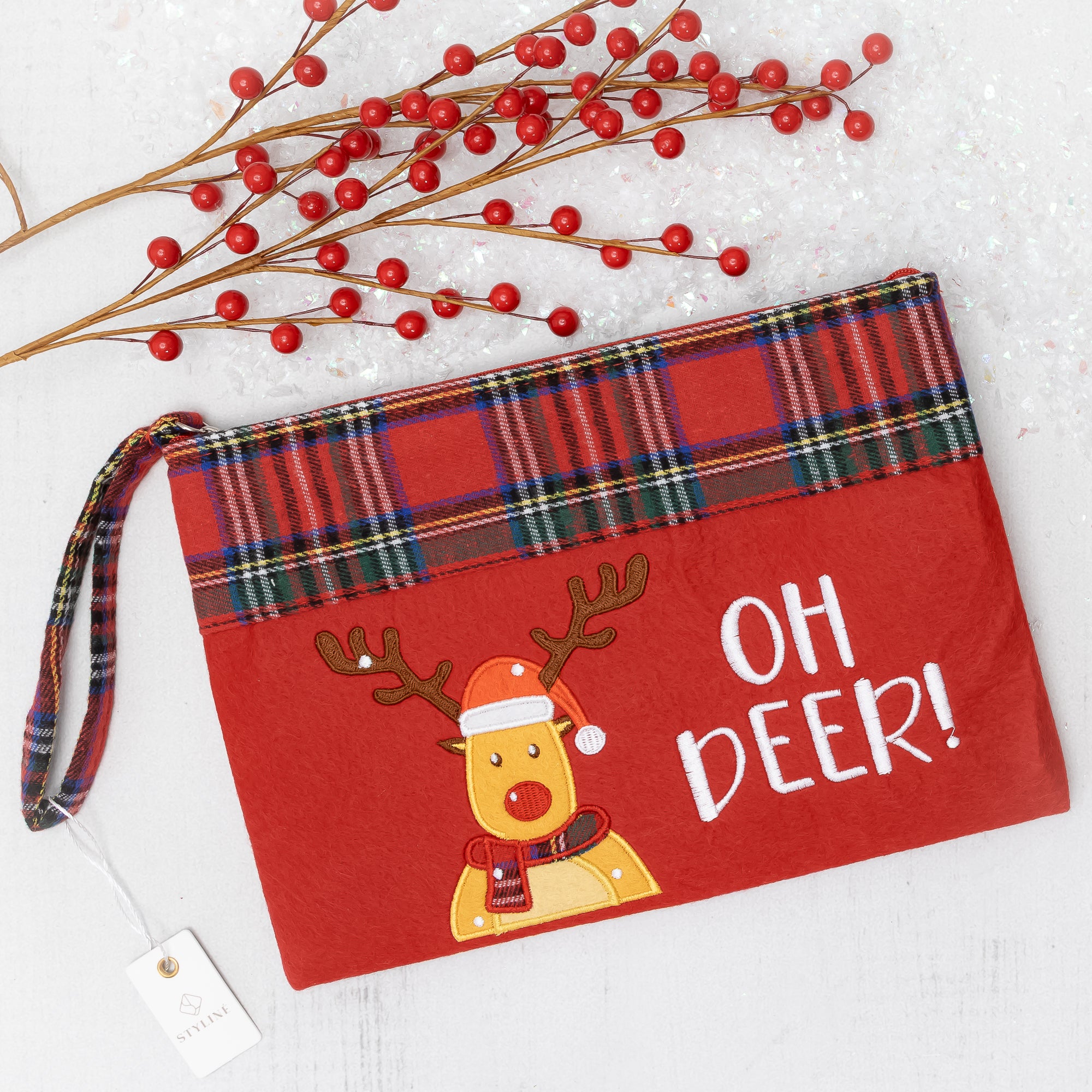 Oh Deer Rodolph Christmas Plaid Gift Pouch Holiday Accessory