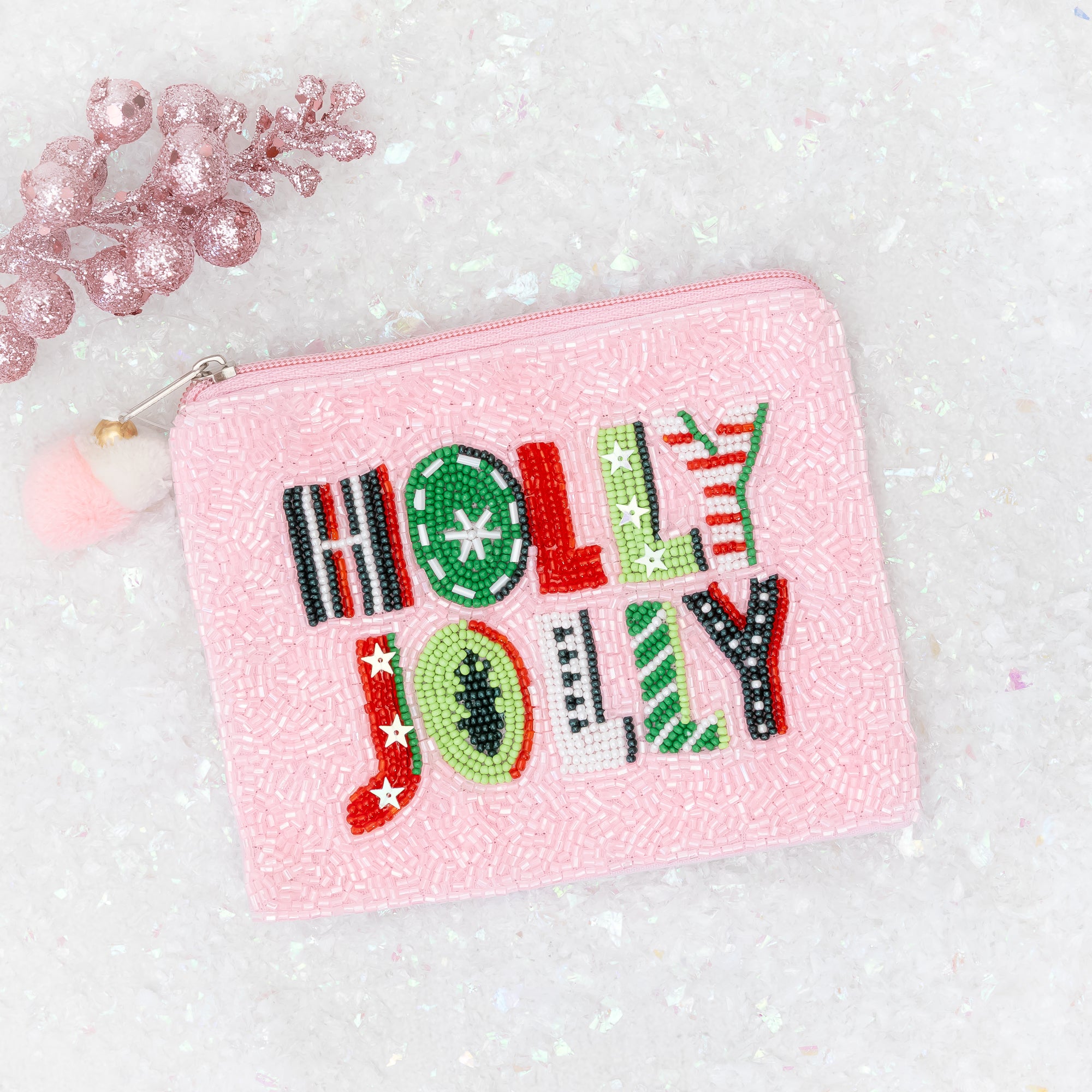 Pink Christmas Holly Jolly Coin Bag Holiday Accessory