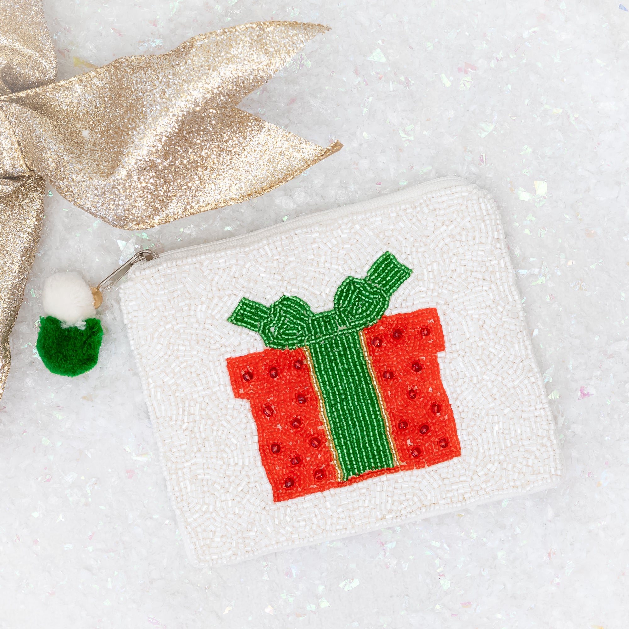 White and Red Christmas Gift box Coin Bag Holiday Accessory
