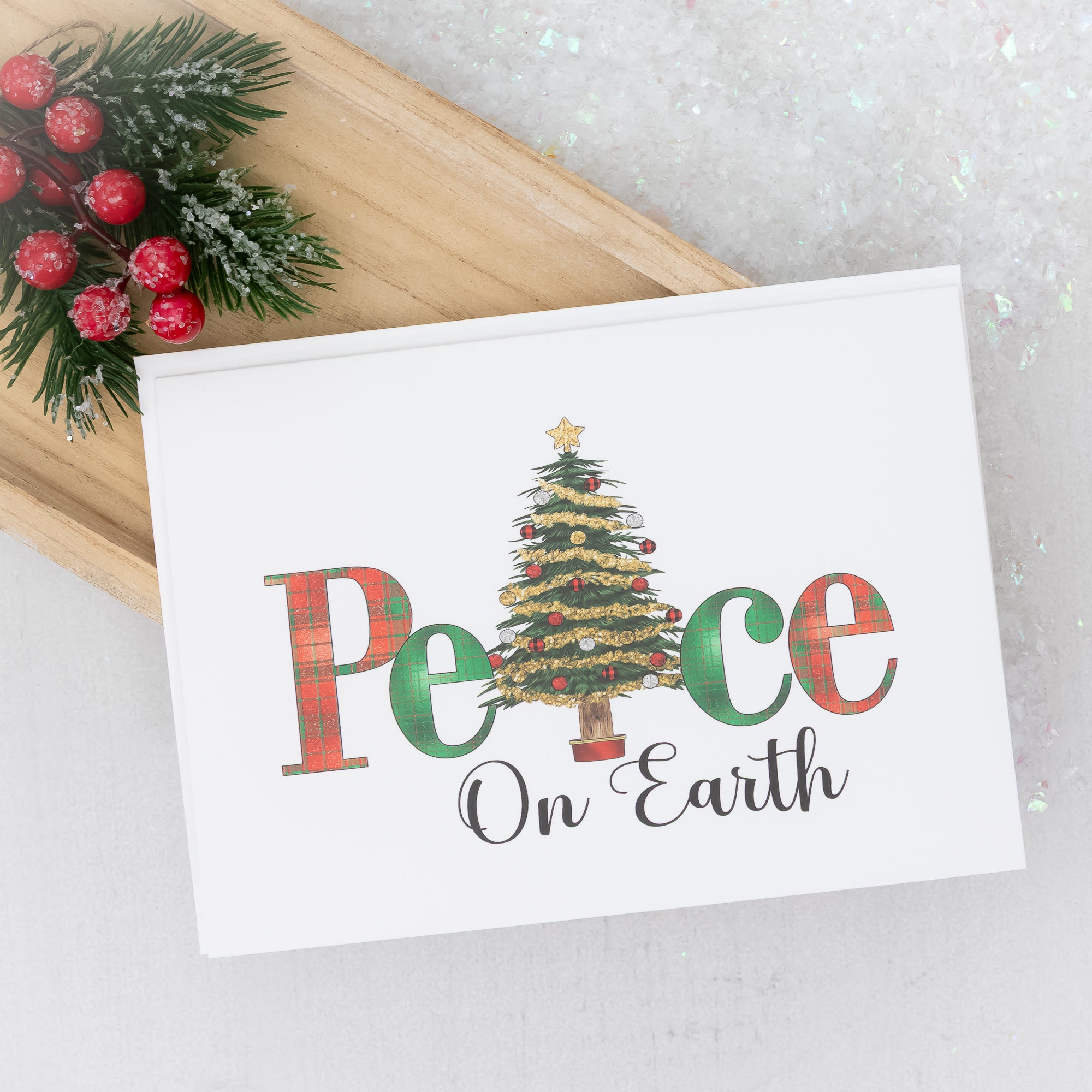 Send a message of hope and harmony with the Peace on Earth Christmas Trees Greeting Card. Featuring elegant evergreen trees and soft holiday tones, this beautifully designed card captures the quiet beauty of the season. Printed on premium cardstock with a blank interior for your personal message — perfect for sharing heartfelt Christmas wishes centered on peace, faith, and love.