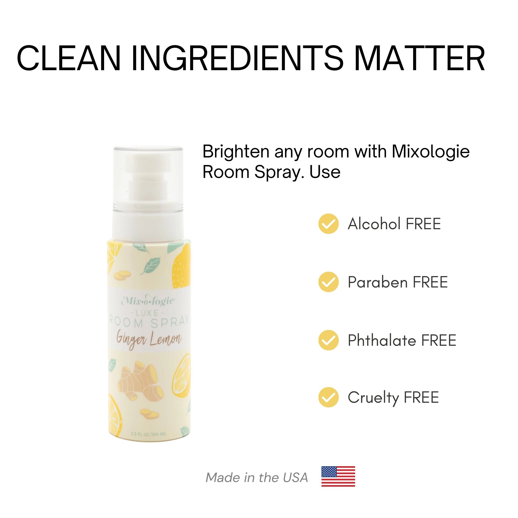 Fill your space with captivating aromas using Mixologie's Luxe Room Sprays! Our 3.3 fl oz full-size fragrances offer long-lasting freshness to uplift any room. Whether you're entertaining guests or seeking a quick mood boost, these room sprays instantly refresh your home. Choose from a variety of delightful scents, each crafted to transform your surroundings into a cozy and inviting haven. Shop now and discover your perfect fragrance!