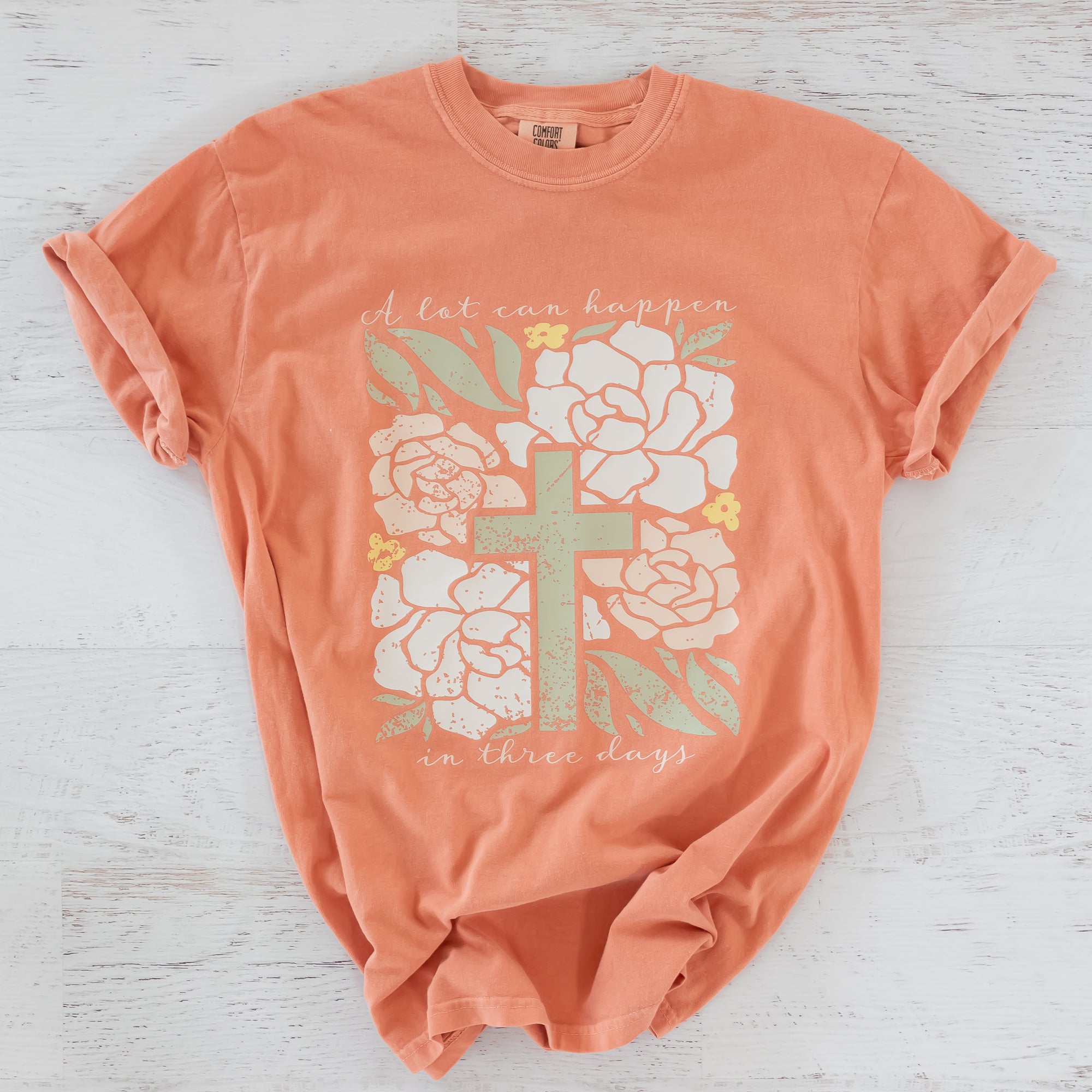 A powerful reminder of the resurrection story, the Three Days Cross Floral Faith Graphic Tee shares the meaningful message, “A lot can happen in three days.” Centered around a beautiful floral cross design, this graphic tee reflects the hope, redemption, and victory found in the resurrection.
