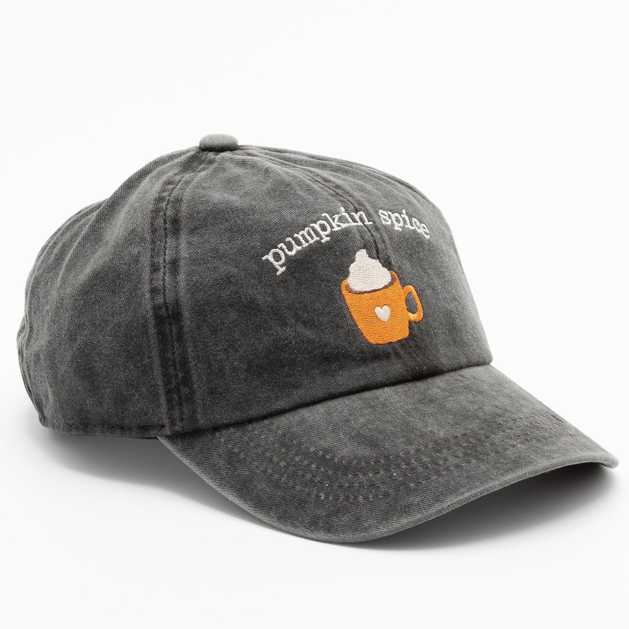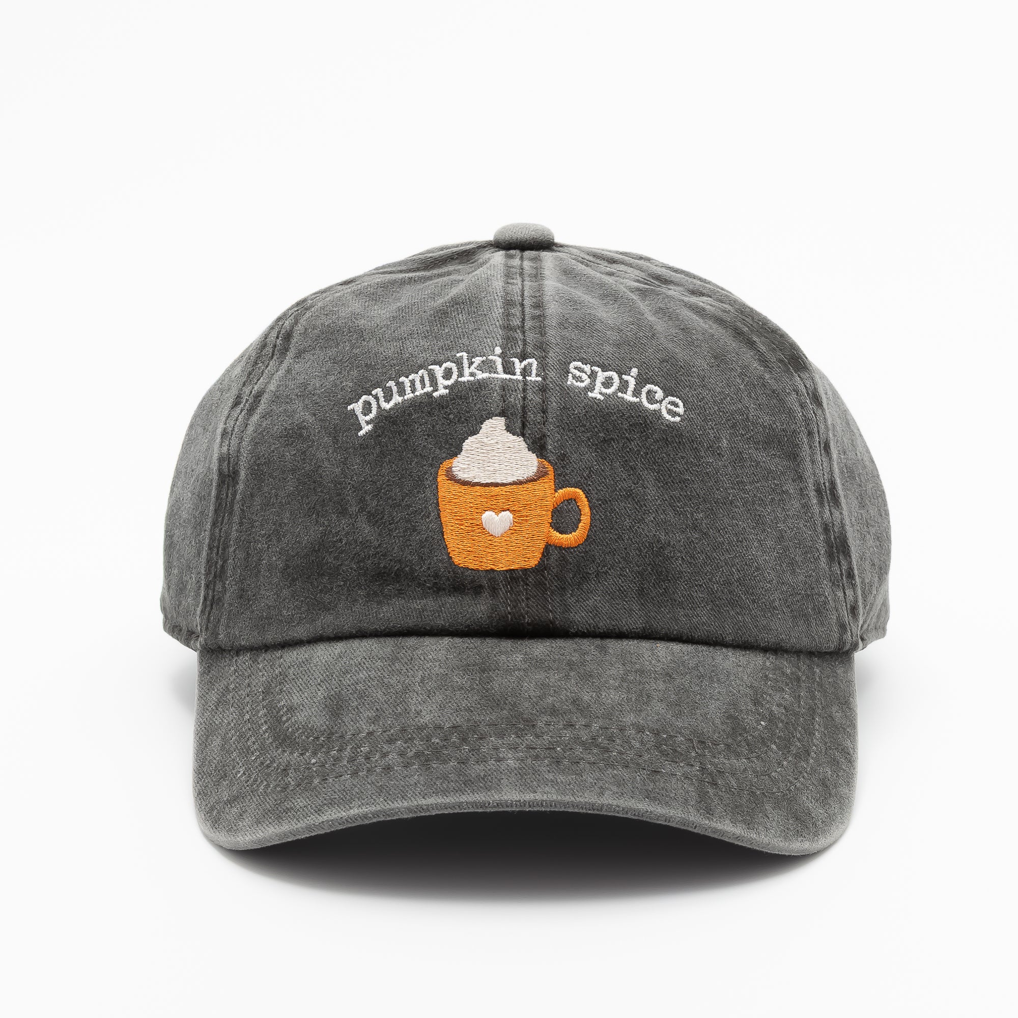 Embroidered Pumpkin Spice Latte Baseball Cap in Black