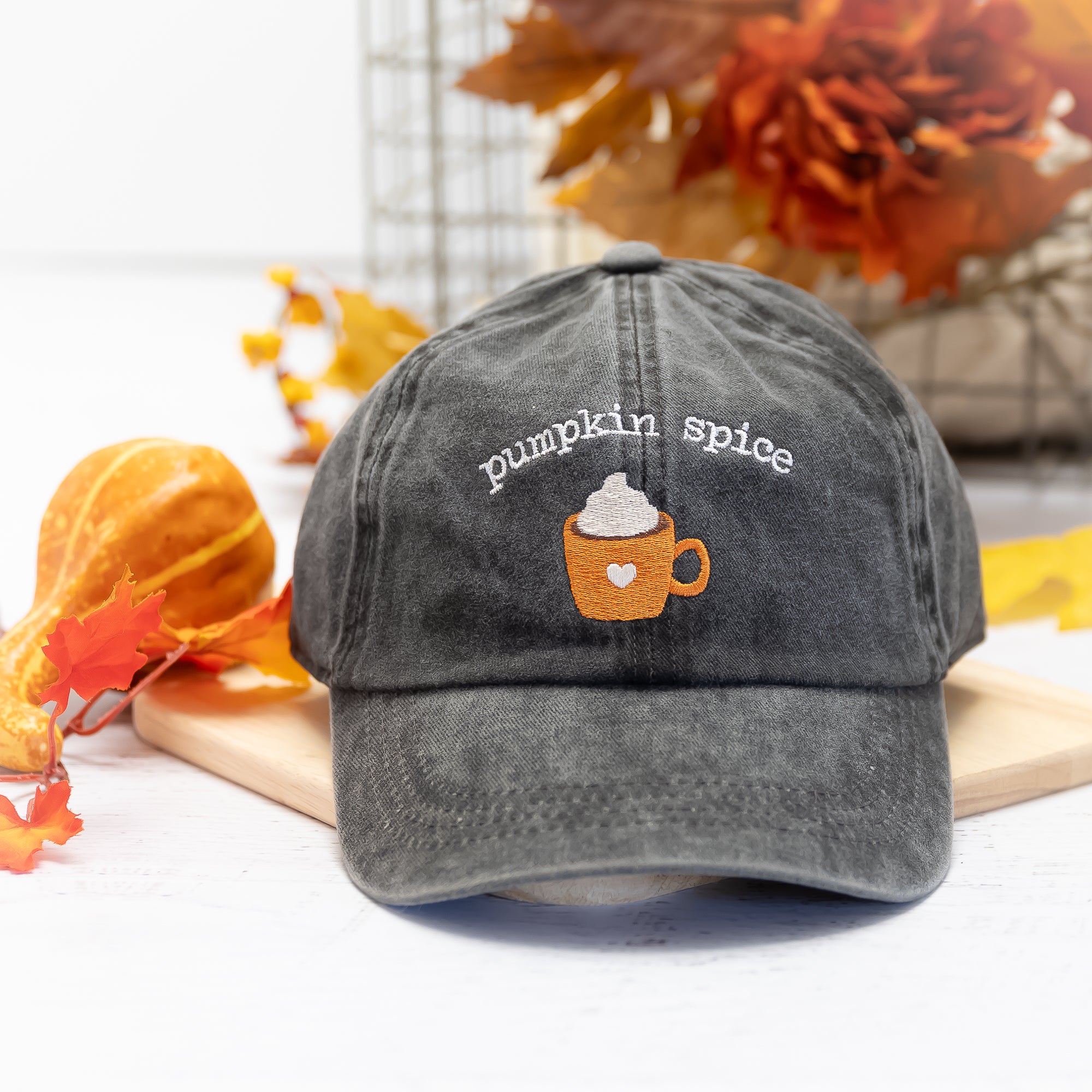 Celebrate your love for fall and coffee with our Embroidered Pumpkin Spice Latte Baseball Cap in Black, a cozy accessory that combines seasonal style with everyday comfort. Featuring a playful embroidered design of the beloved pumpkin spice latte, this hat is perfect for coffee lovers who can’t resist the charm of autumn.