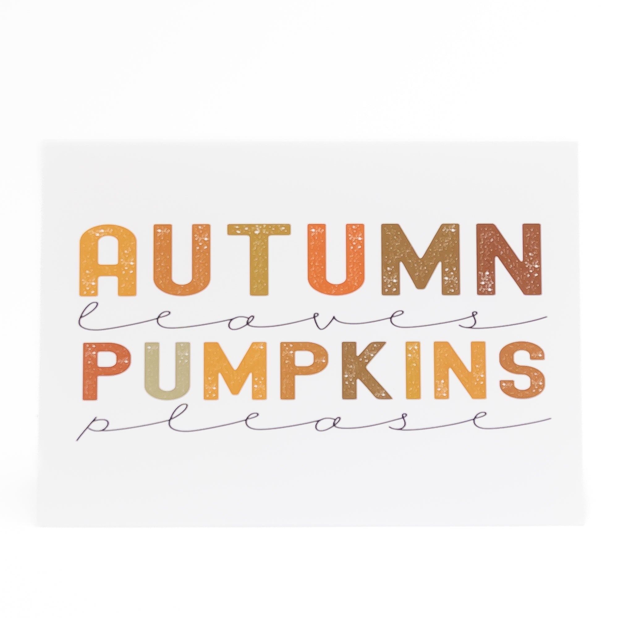 Celebrate the cozy charm of fall with this delightful greeting card set! Each card features the festive phrase Autumn Leaves, Pumpkins Please in a warm seasonal design, perfect for sending love, encouragement, or a thoughtful note during the harvest season.